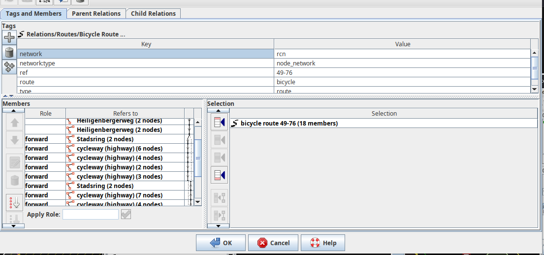 - Relation bevat nodes, ways en/of andere relations
