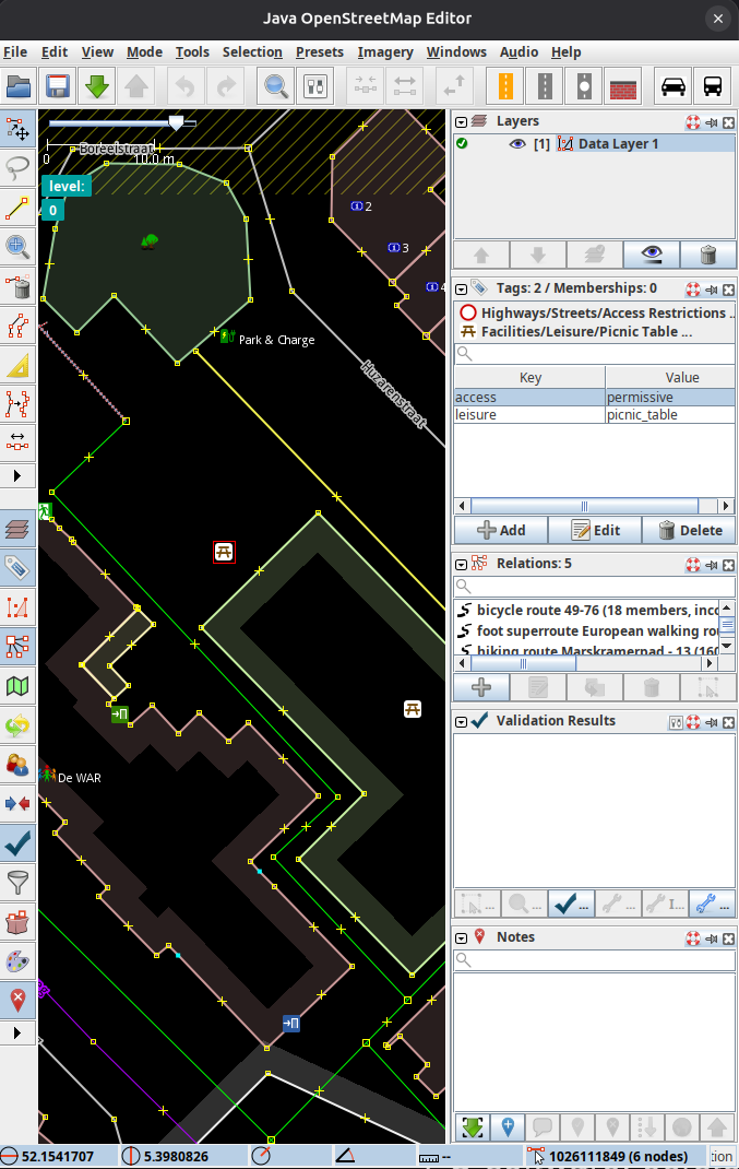 - Soms Vespucci voor complexere edits onderweg