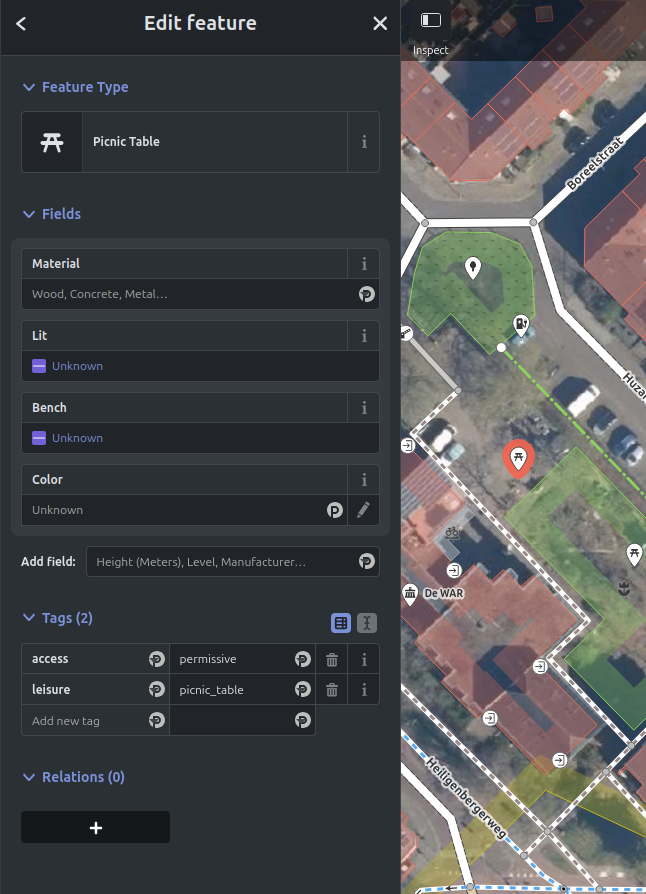 - Bijvoorbeeld leisure=picnic_table